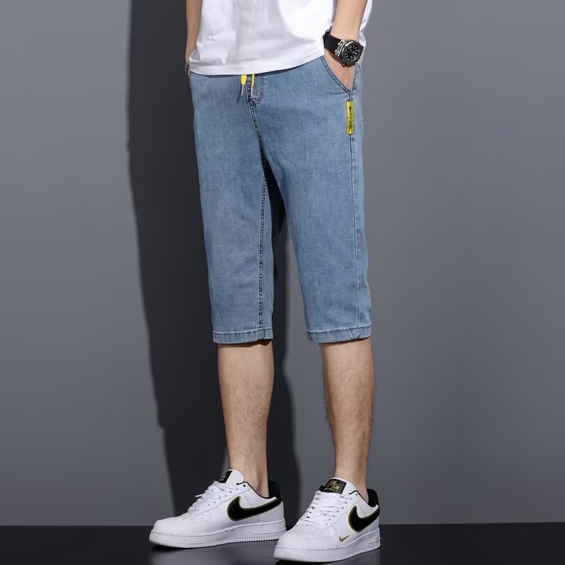 Jeans shorts für Männer, Hongkonger Stil, trend ige Marke, lose Retro-All-Match-Hosen mit geradem Bein, trend ige hübsche kurze Hosen, dünne Sommer modelle