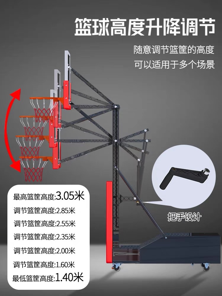Basketball halle mobiler Basketball korb für Erwachsene Indoor-Jugend verstellbarer Basketball korb für Kinder handge kurbel ter mobiler Basketball korb