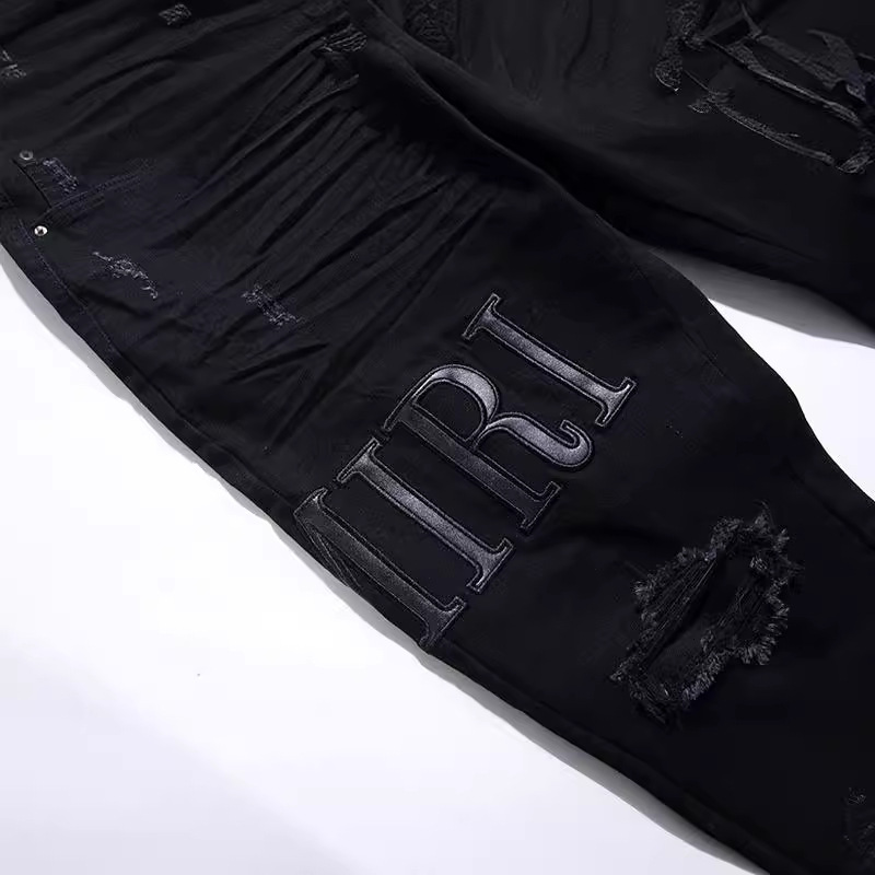 24 Jahre richtige Version von Amiri Jeans zerrissene Stickerei Boutique High-Edition Fashion Fashion Marke schlanke Freizeit hose