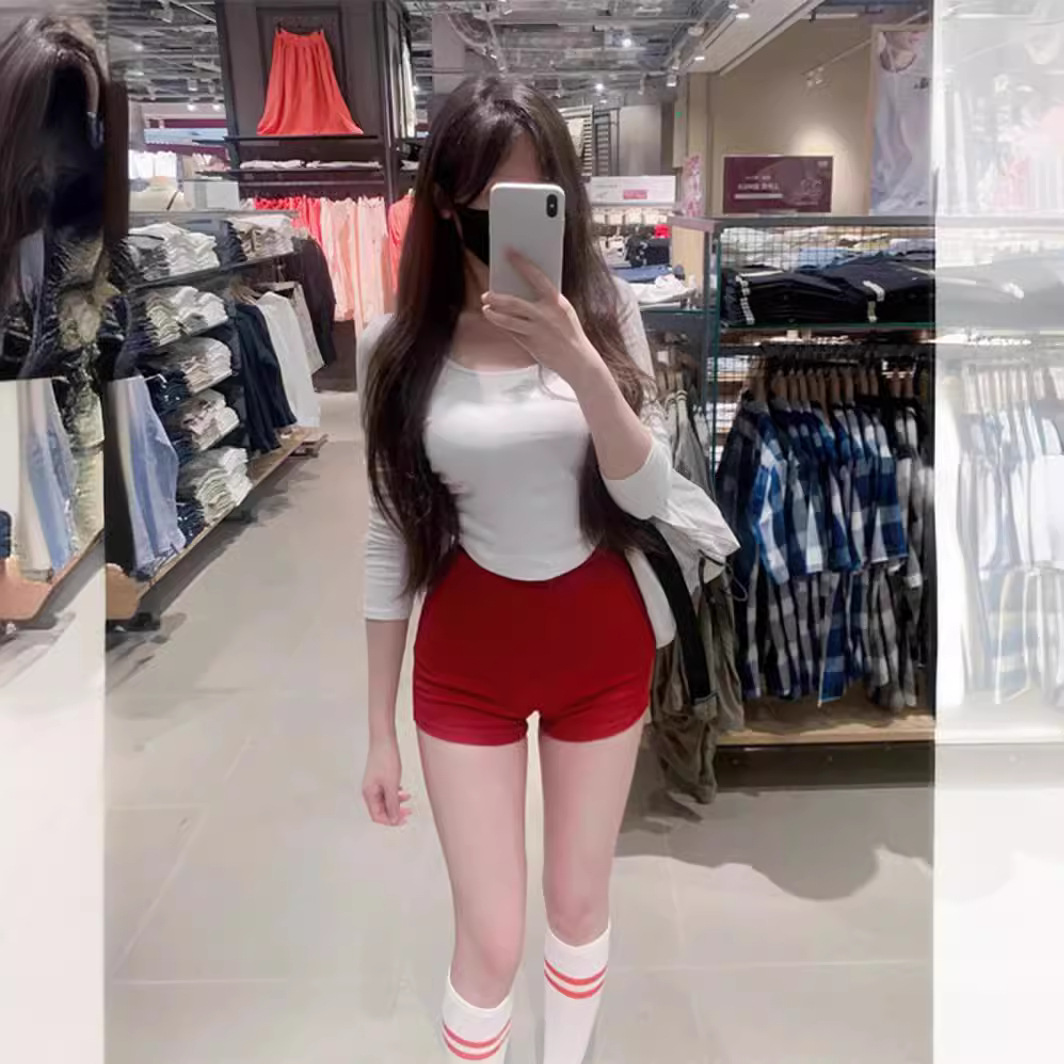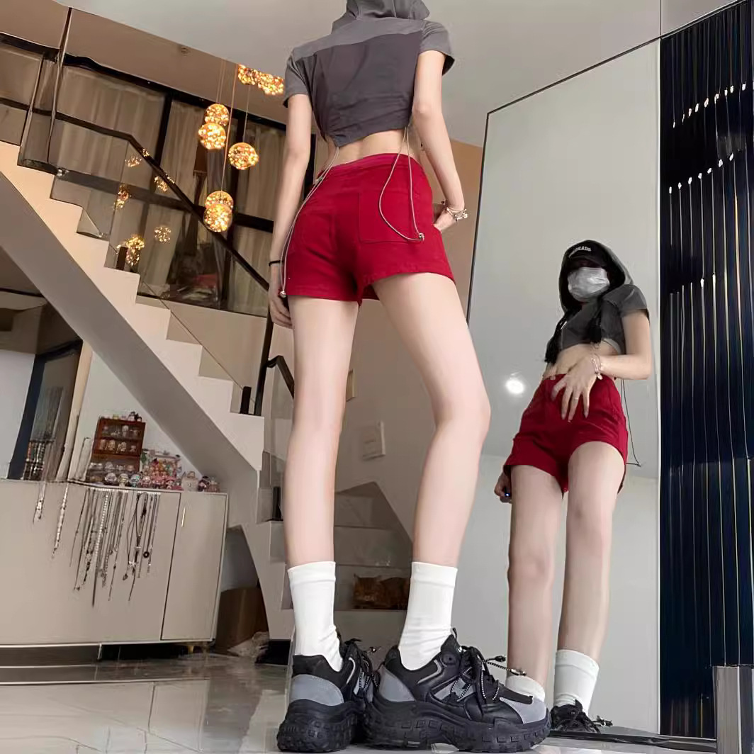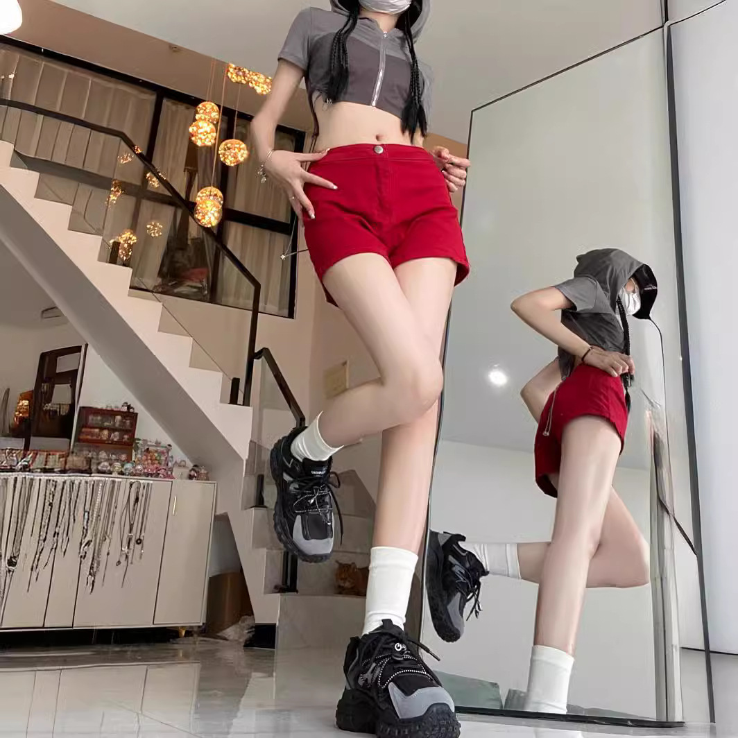 Rote Retro-Jeans shorts mit hoher Taille für Frauen 2024 neue heiße Sommer-Basis tragen süße und heiße amerikanische Hosen