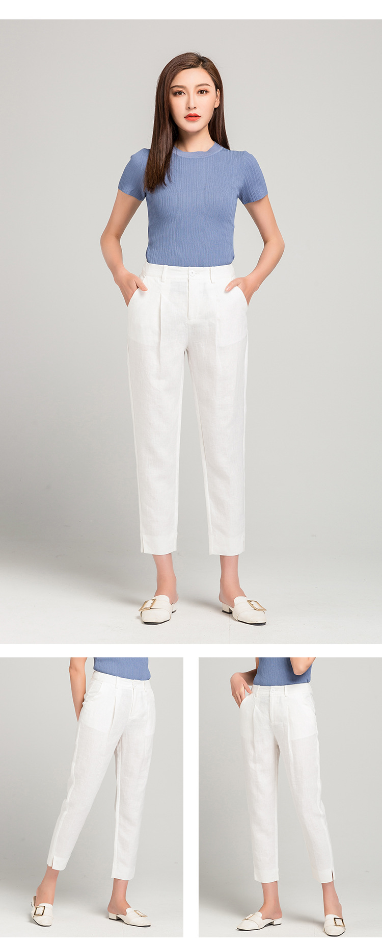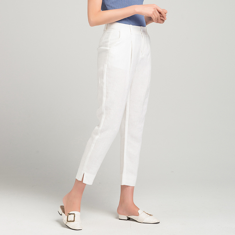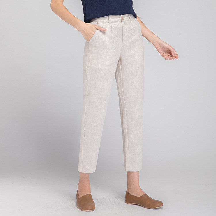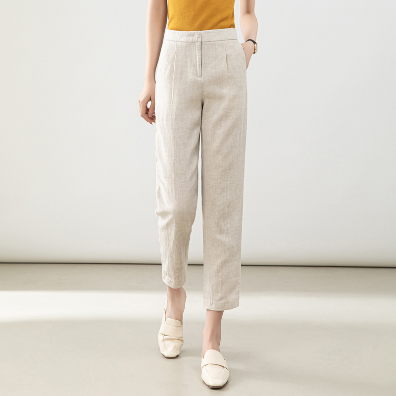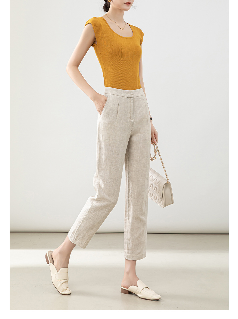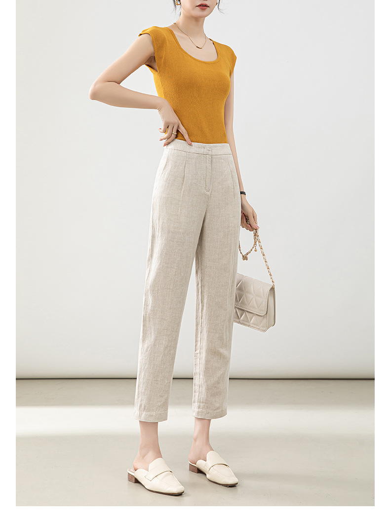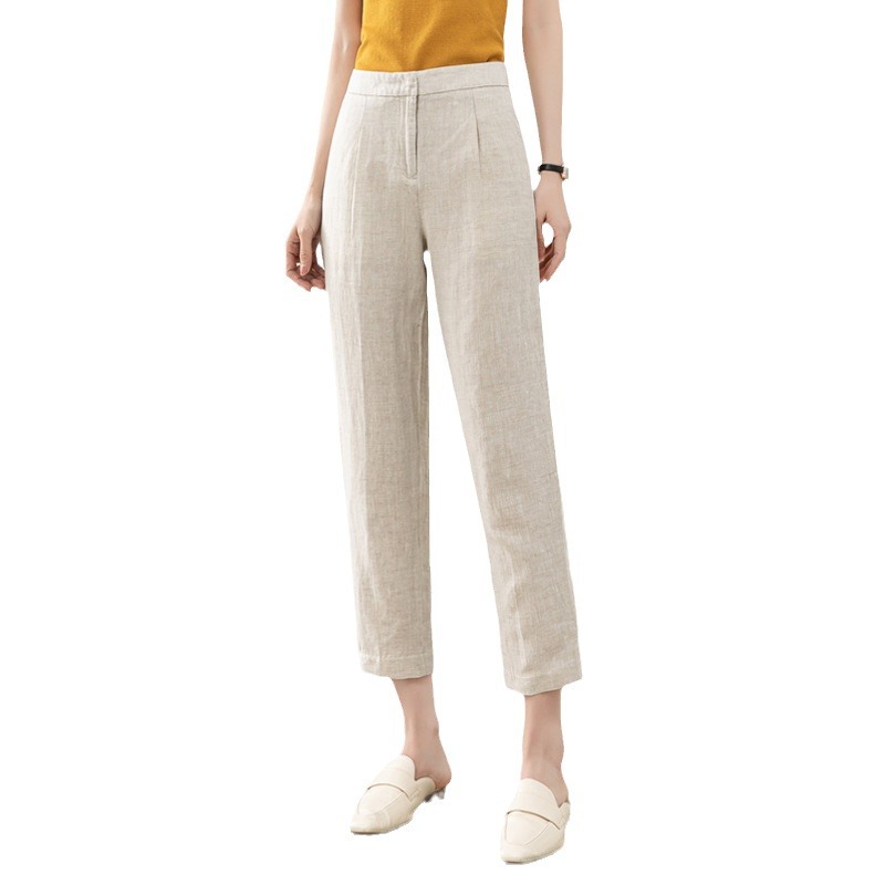 Leinen rauchrohr hose Frauen 2025 Sommer neuen Stil dünne High-Waist kleine Acht-Punkte-Freizeit hose Baumwolle und Leinen gerade Hose