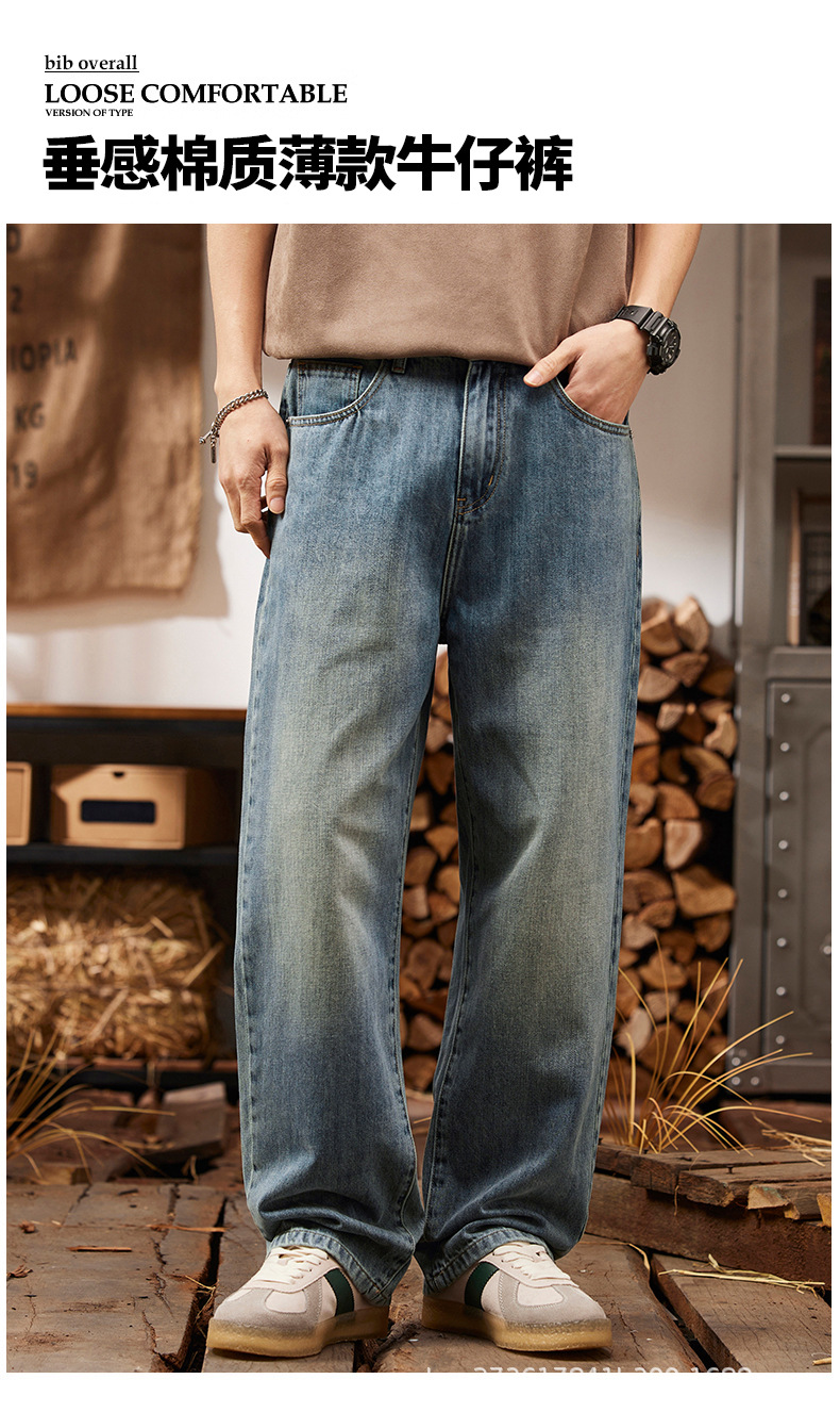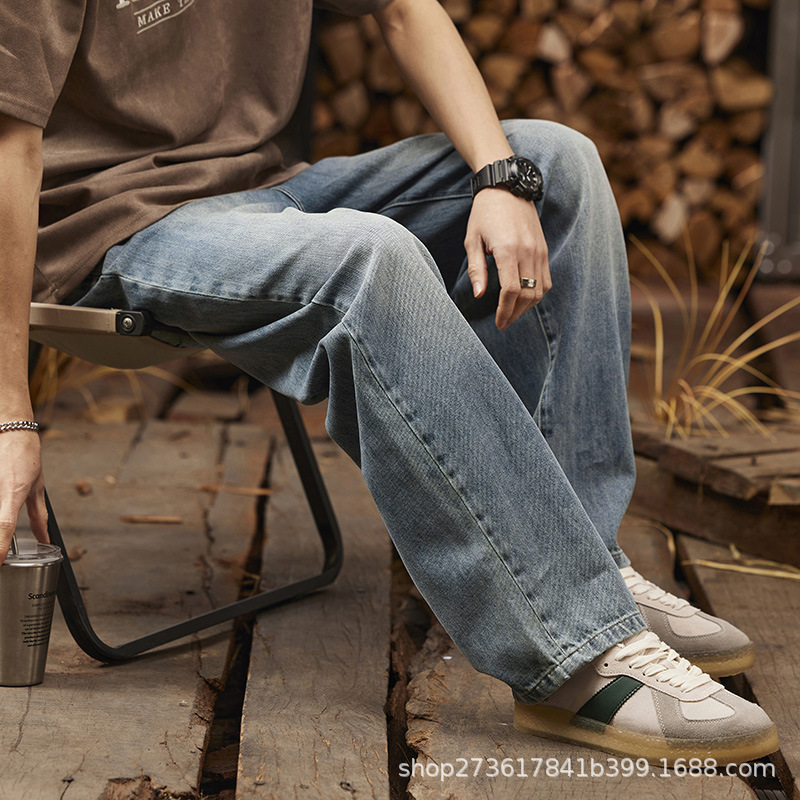 Amerikanische Retro Glacier Blue Micro La Jeans Herren lose gerade 2025 Herren hose Sommer dünne helle Freizeit